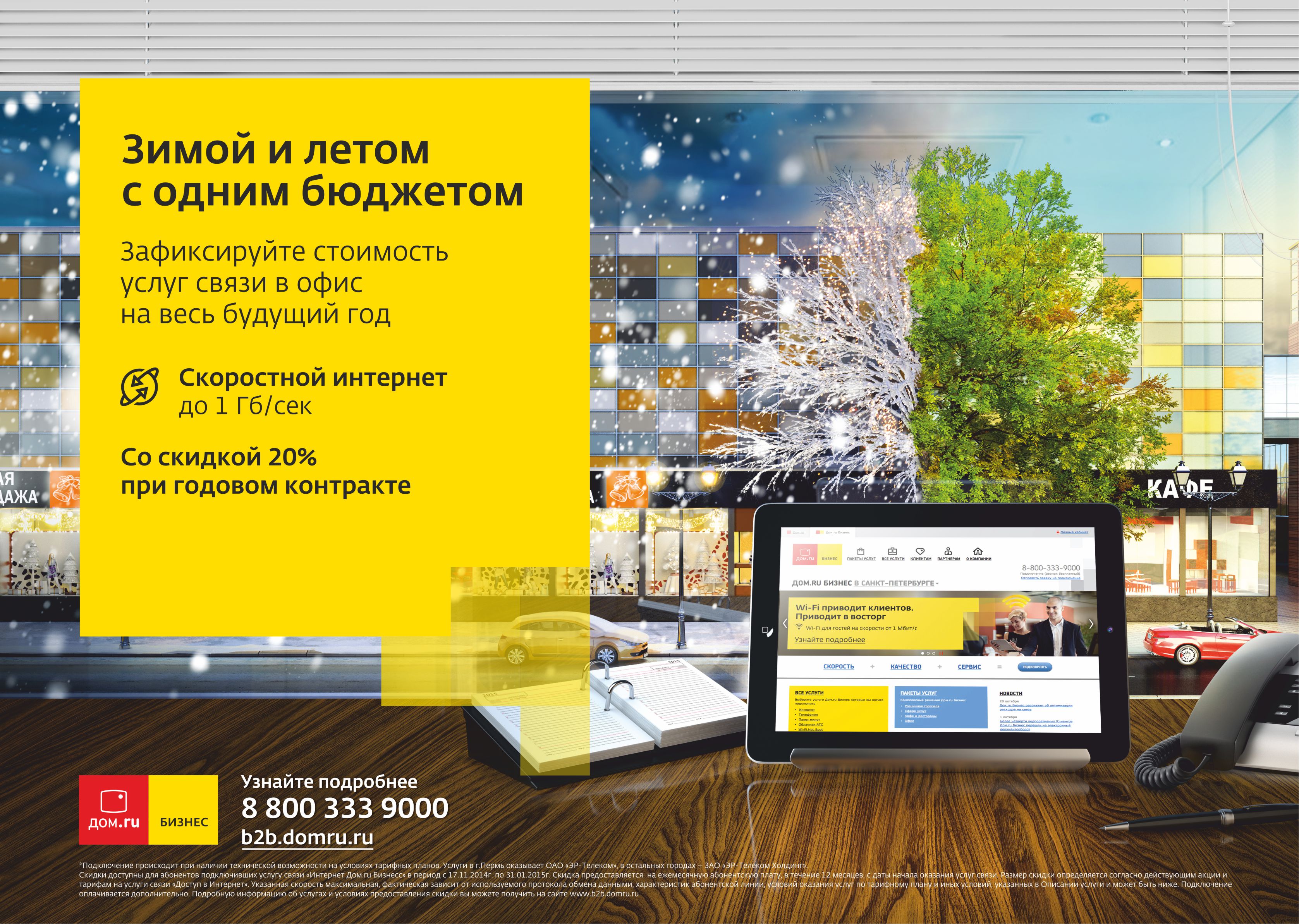 Абонентская плата не меняется на протяжении всего года с момента подключения к услугам «Дом.ru Бизнес». Специальное предложение позволяет упростить планирование бюджета на телекоммуникации и оптимизировать затраты на услуги связи, исходя из потребностей компании.