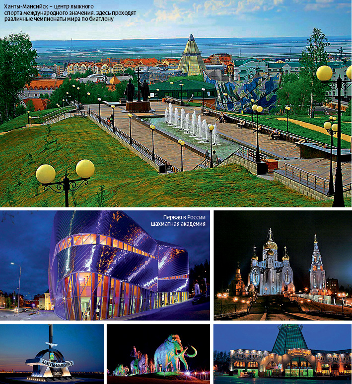 История современного Ханты-Мансийска началась в 1930 году, когда в трех километрах от села Самарово был образован рабочий поселок Остяко-Вогульск. Возможно, он так и остался бы тихим уголком, если бы в начале 80-х годов вблизи населенного пункта не забил нефтяной фонтан. За недолгий срок в этих местах был открыт ряд месторождений, среди них оказалось и Приобское – одно из крупнейших в мире. Сейчас Ханты-Мансийск превратился в передовой город, напоминающий по облику европейскую столицу. Здесь проходят крупнейшие мероприятия международного масштаба – фестиваль кинематографических дебютов «Дух огня», фестиваль программ и телевизионных фильмов «Золотой Бубен». В столице ХМАО–Югры неоднократно встречали гостей чемпионатов мира по биатлону – здесь расположился биатлонный стадион международной категории с крупнейшей в мире равнинной биатлонной трассой.