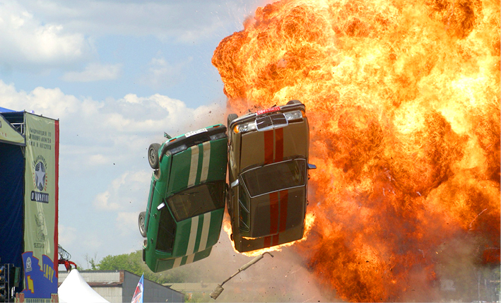 Подножье горы Гасфорта в день фестиваля напоминает съемочную площадку голливудского блокбастера. Десятки трюкачей из России, Беларуси, США и стран Европы горят, взрываются, летают на автомобилях и мотоциклах, падают с огромной высоты. Участники не просто соревнуются в мастерстве за титул чемпиона мира, но и получают свою минуту славы, ведь в кино их лица всегда остаются за кадром.